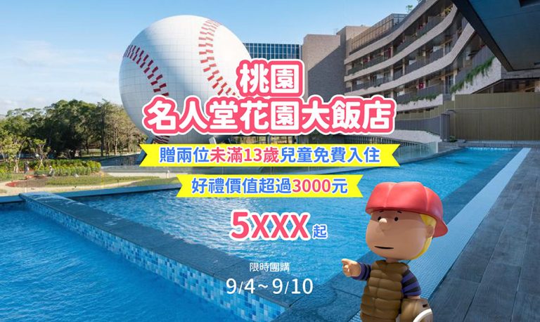 來了來了!大家敲碗超久的「桃園名人堂花園大飯店」開團啦!結合了飯店、棒球名人堂和史努比花生漫畫樂園,這次除了專案價格優惠之外,每房再加贈兩位未滿13歲…