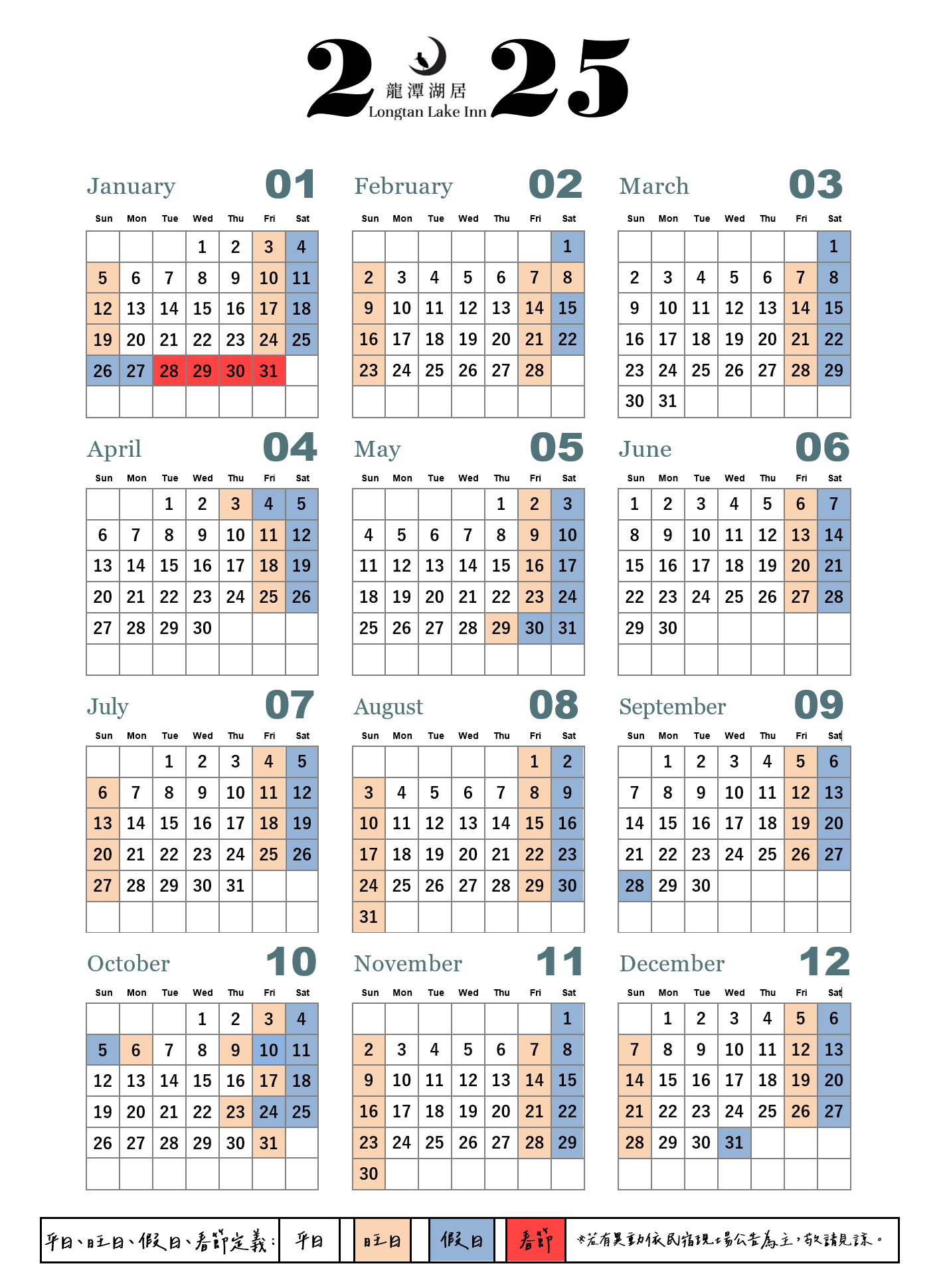 - 若有任何異動,以龍潭湖居現場告示為主。