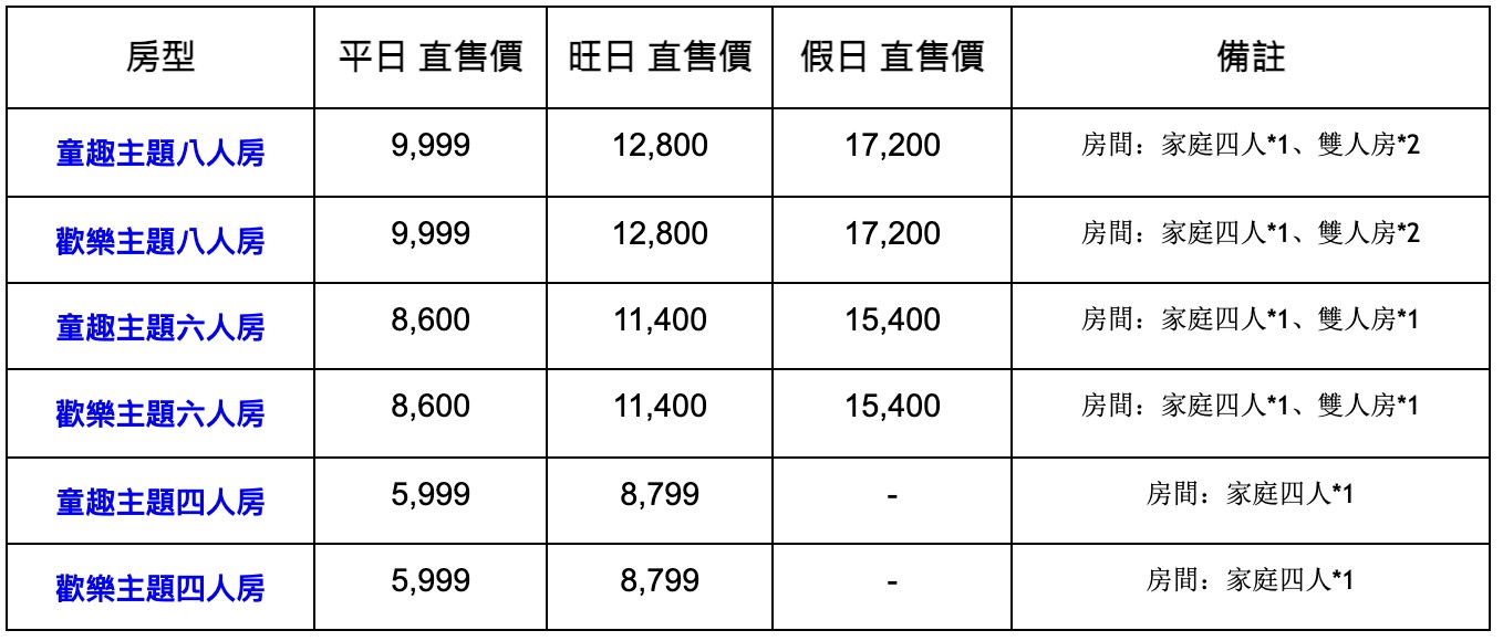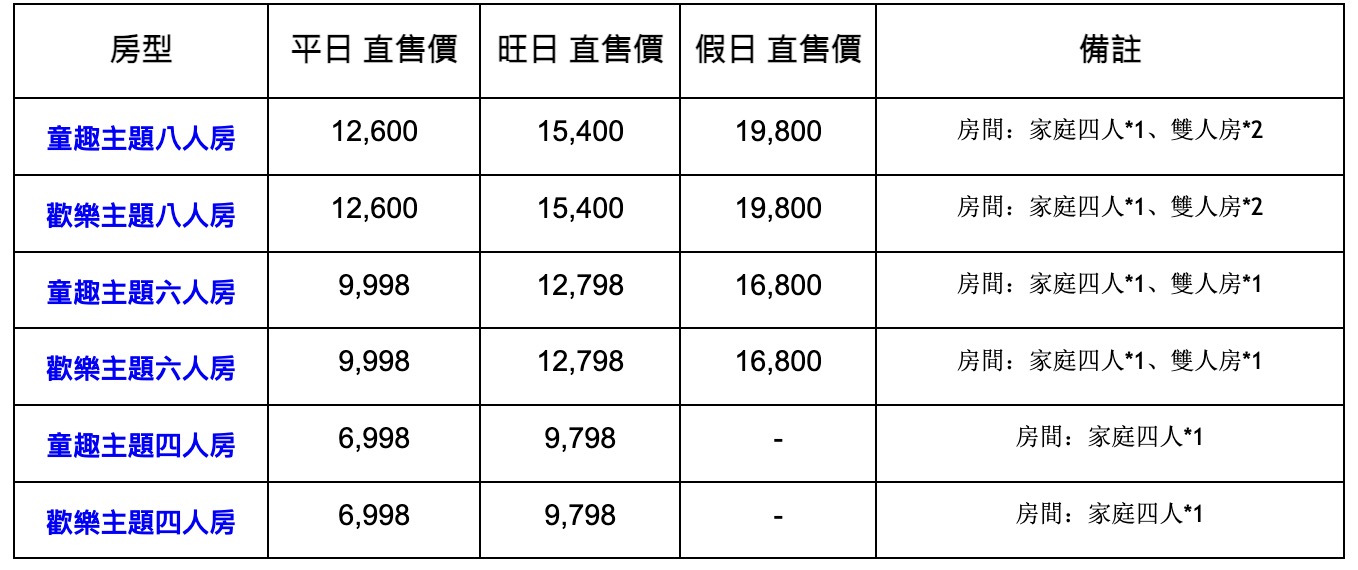 歡樂主題八人房:家庭四人房1間、雙人房2間