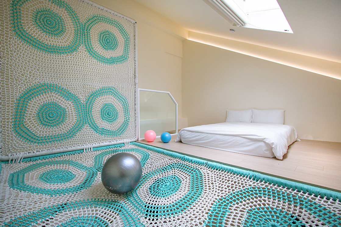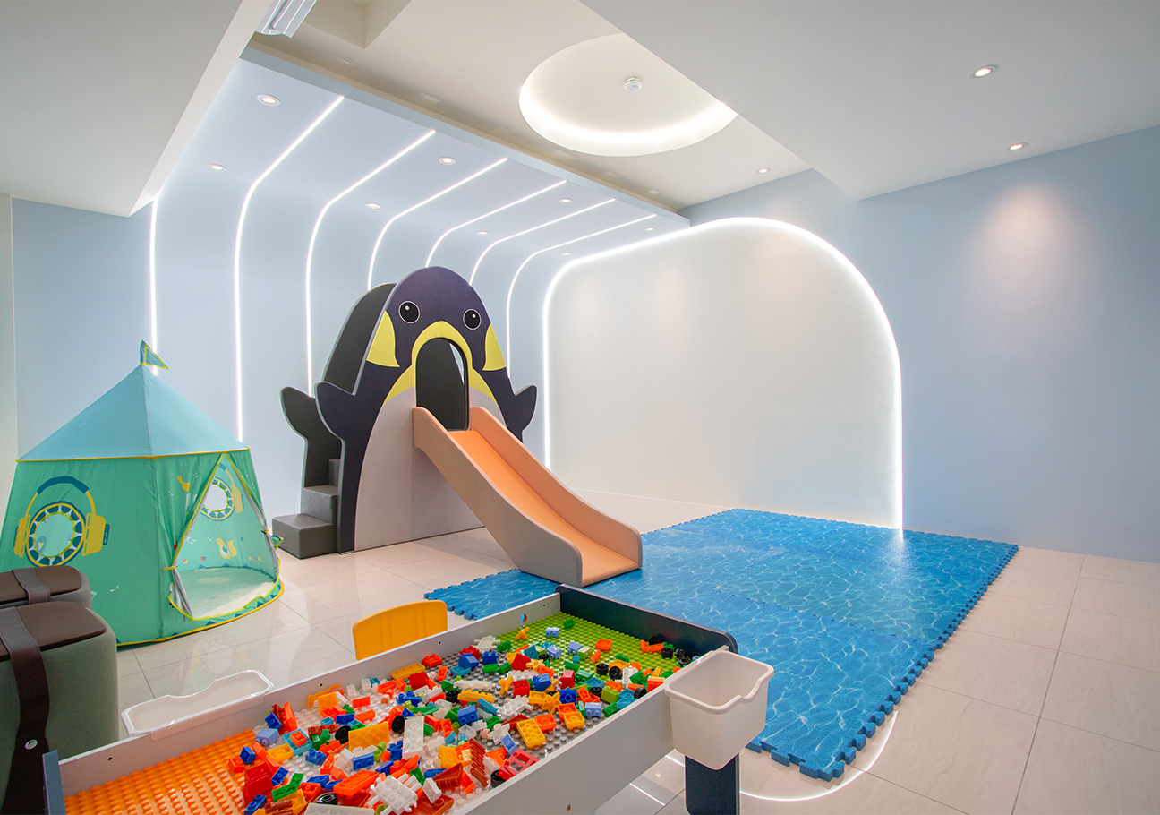 ■ 童趣主題房:地下一樓有專屬兒童遊戲室、溜滑梯,四人房有攀爬網