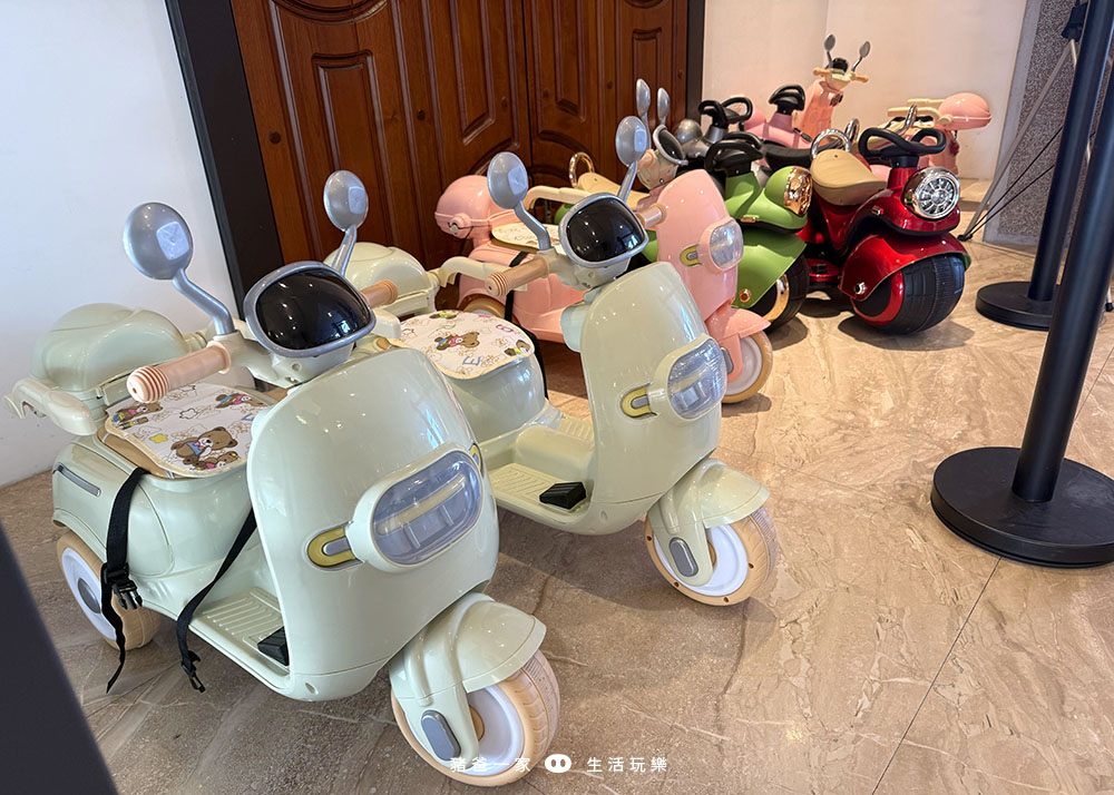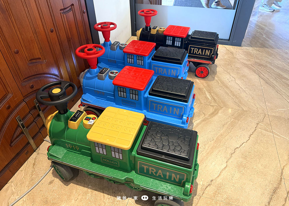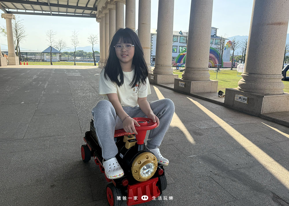 這個是小小朋友的最愛,有小火車、摩托車和跑車等樣式,可以開到戶外的車道(園區內)。