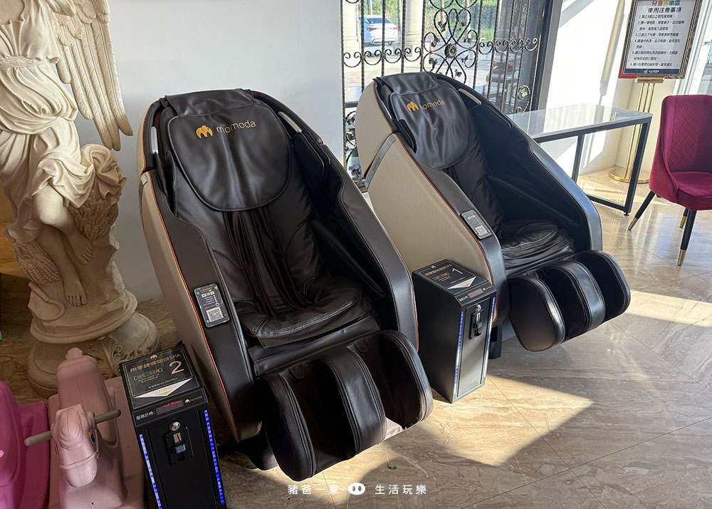 球池旁邊就是兩台投幣式按摩椅,爸媽顧小孩之餘可以在這邊享受一下。