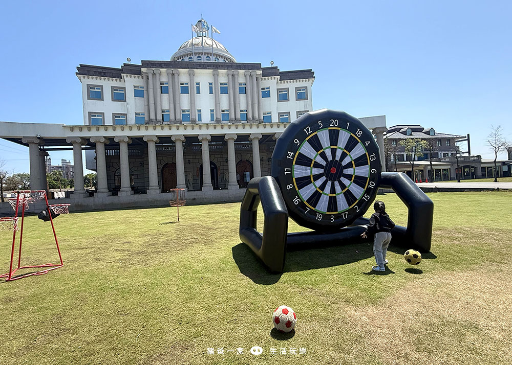 這個足球和靶心像是魔鬼粘,球踢過去時會黏在靶上,滿有趣的。