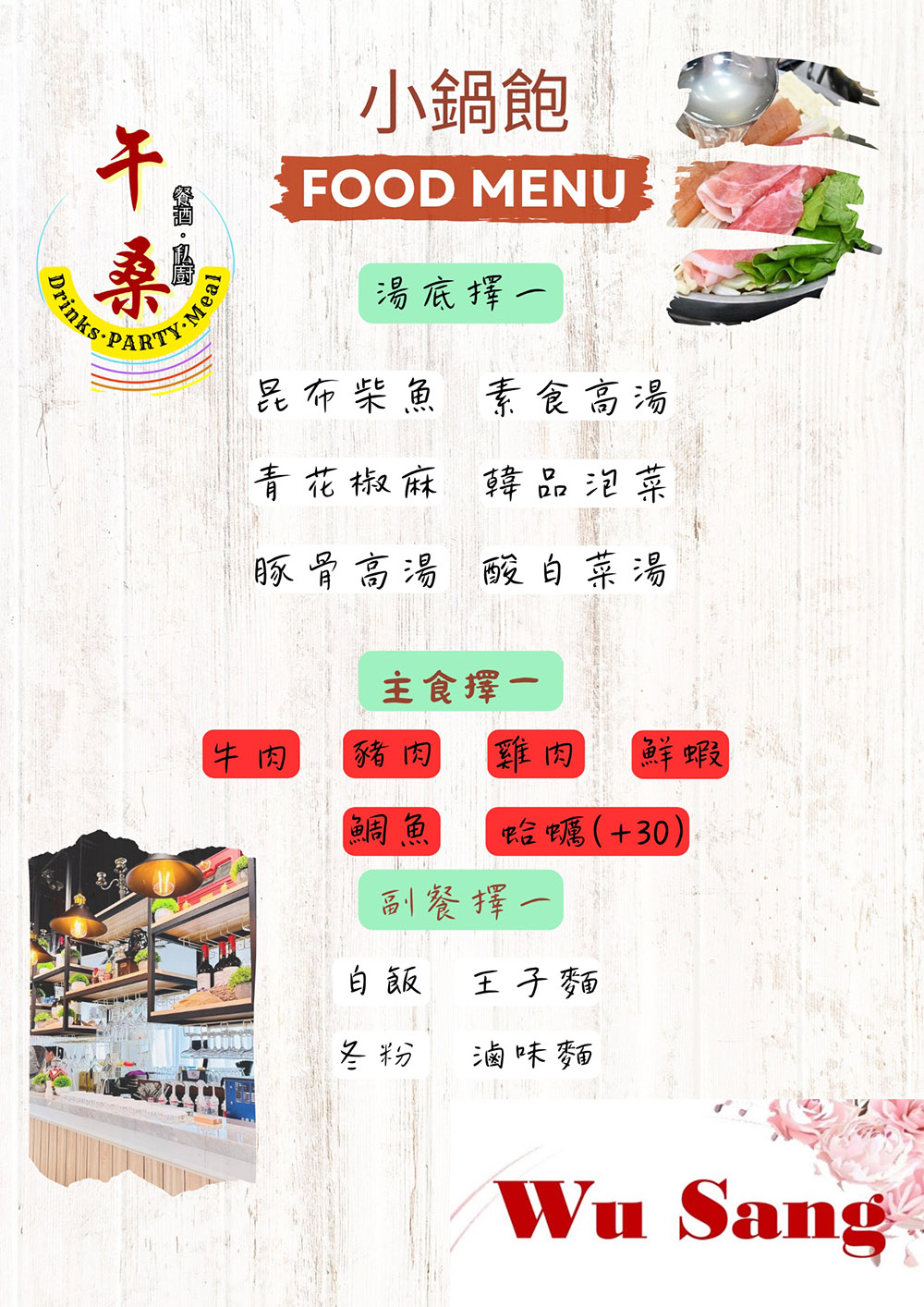 ✅ 晚餐午桑餐酒館小火鍋2份