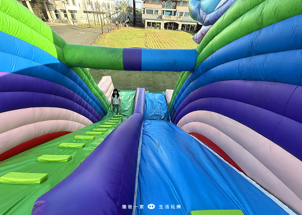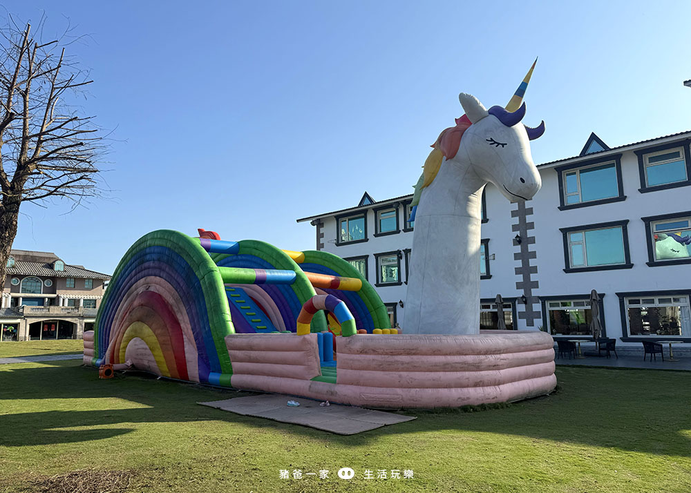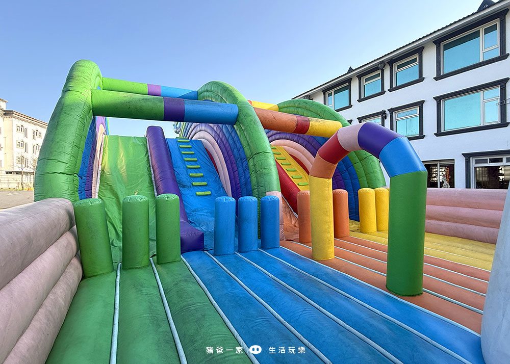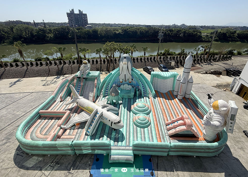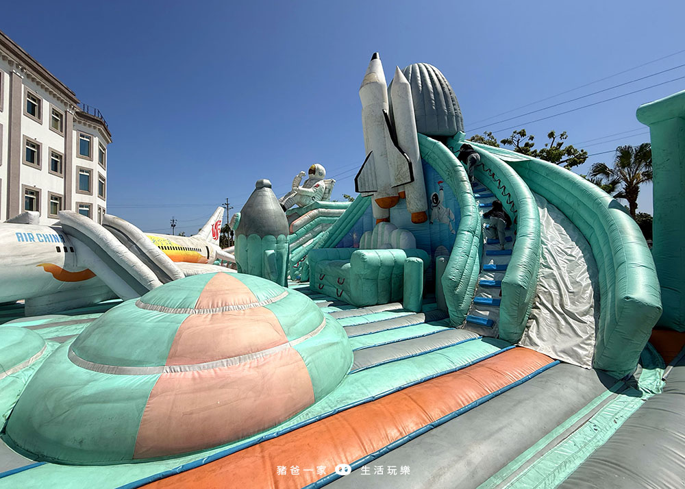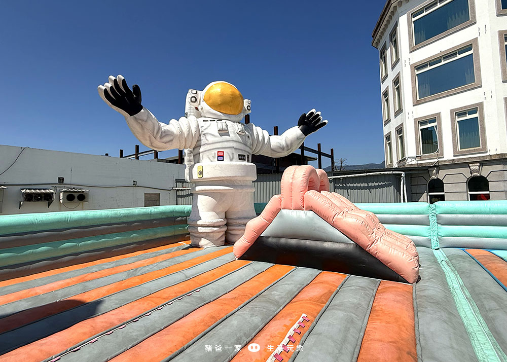 太空人氣墊在飯店的後方,要走到飯店後面才看得到,當天入住很多人不知道有這個大型氣墊,所以大家不要錯過囉。