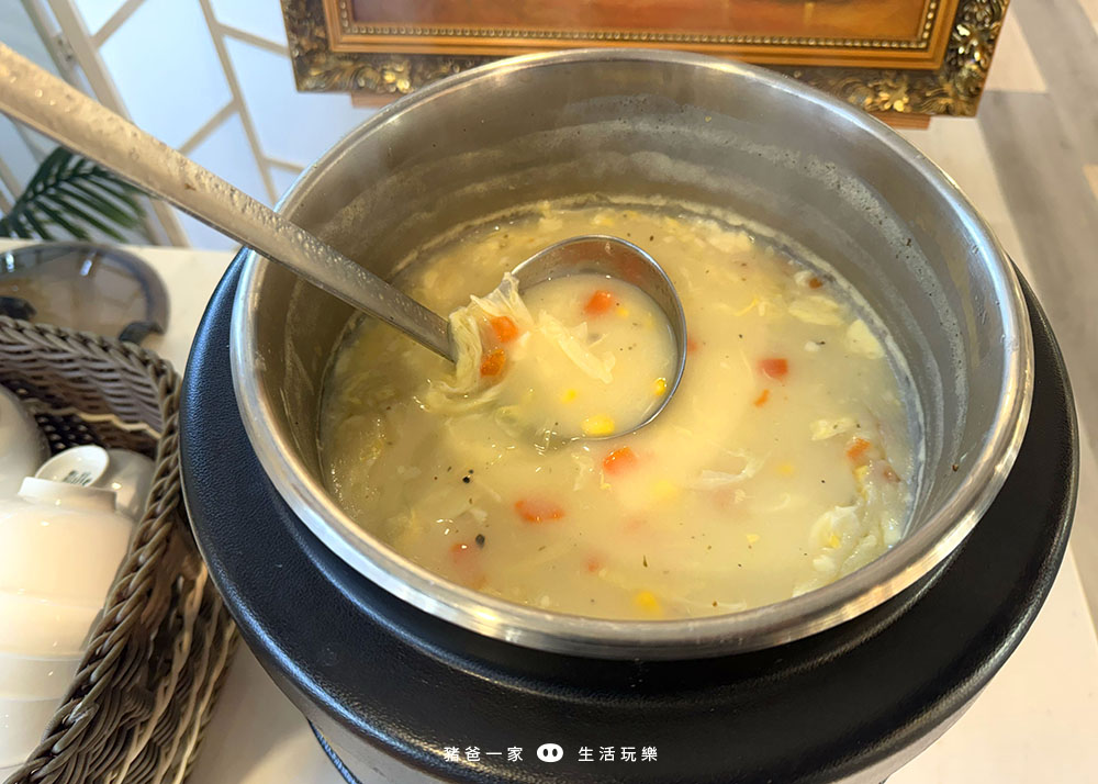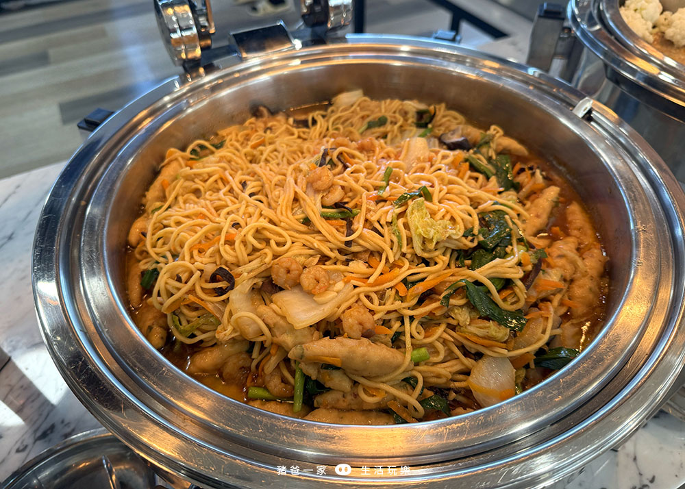 早餐比較偏中式料理,當天有吃到炒麵、燉牛肉、玉米濃湯、飲料等等,品項不算多,但還滿精緻的。