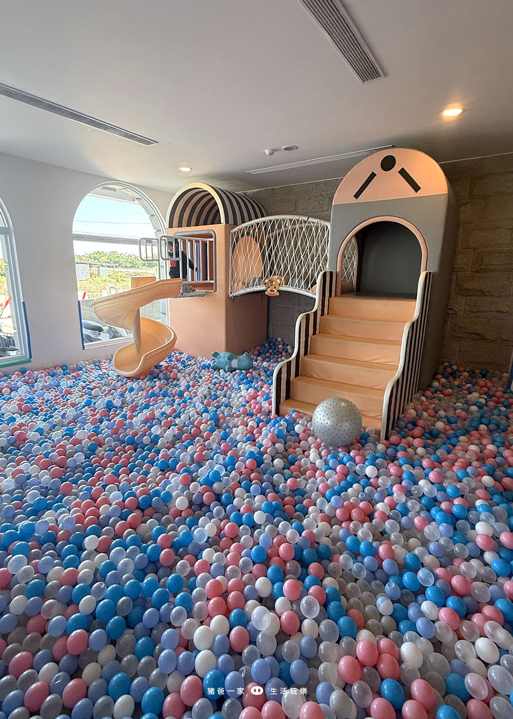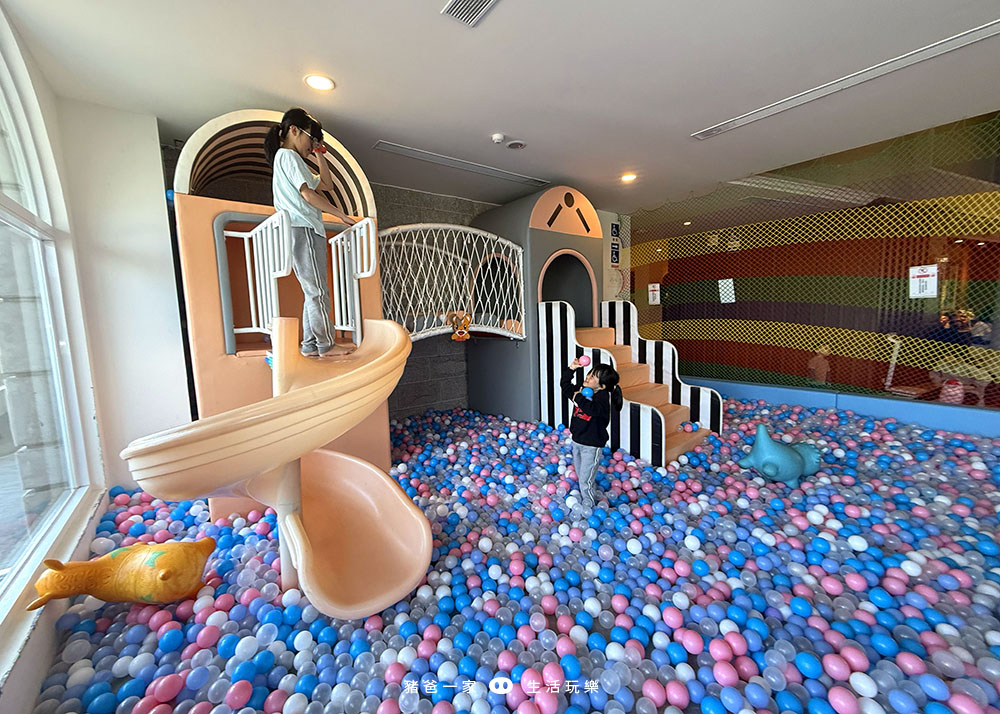 大大的球池和溜滑梯,小朋友在這邊就可以玩很久。
